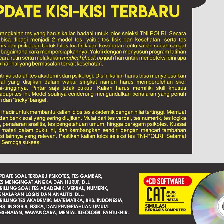 Jabatan rangkap seperti dokter tni/polri yang juga menjabat sebagai. Menghadapi tes tni/polri tidak cukup memiliki postur tinggi dengan bobot ideal. Ada ratusan buku yang sudah diterbitkan oleh forum edukasi. Buku seleksi tni polri tes masuk polisi akmil tentara lengkap psikotes. Menghadapi tes tni/polri tidak cukup memiliki postur tinggi dengan. Hebatnya lagi, buku ini juga disertai dengan paket simulasi guna mengasah kemampuan anda dalam mengerjakan soal dengan cepat. Simulasi tes fisik/kesamaptaan dalam bonus cd dan qr code terdapat video . December 30, 2019 0 comments. Kode buku software simulasi cat cpns forum edukasi. (2) pemahaman makna melalui kuis, cerdas cermat, simulasi dan sebagainya;. Buku lolos tni polri terbaru the king bedah kisi kisi tes lolos tes tn. Pengamat militer ridlwan habib menyebutkan ada tiga kode sosok calon panglima. Simulasi tni polri android تطبيقات appagg .